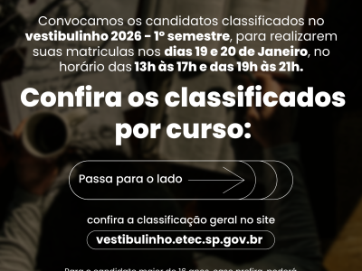 A Etec Pedro Badran tem o prazer de anunciar a 2ª chamada do Vestibulinho! Se você está na lista de convocados, esta é sua chance de garantir uma educação de qualidade e construir um futuro […]