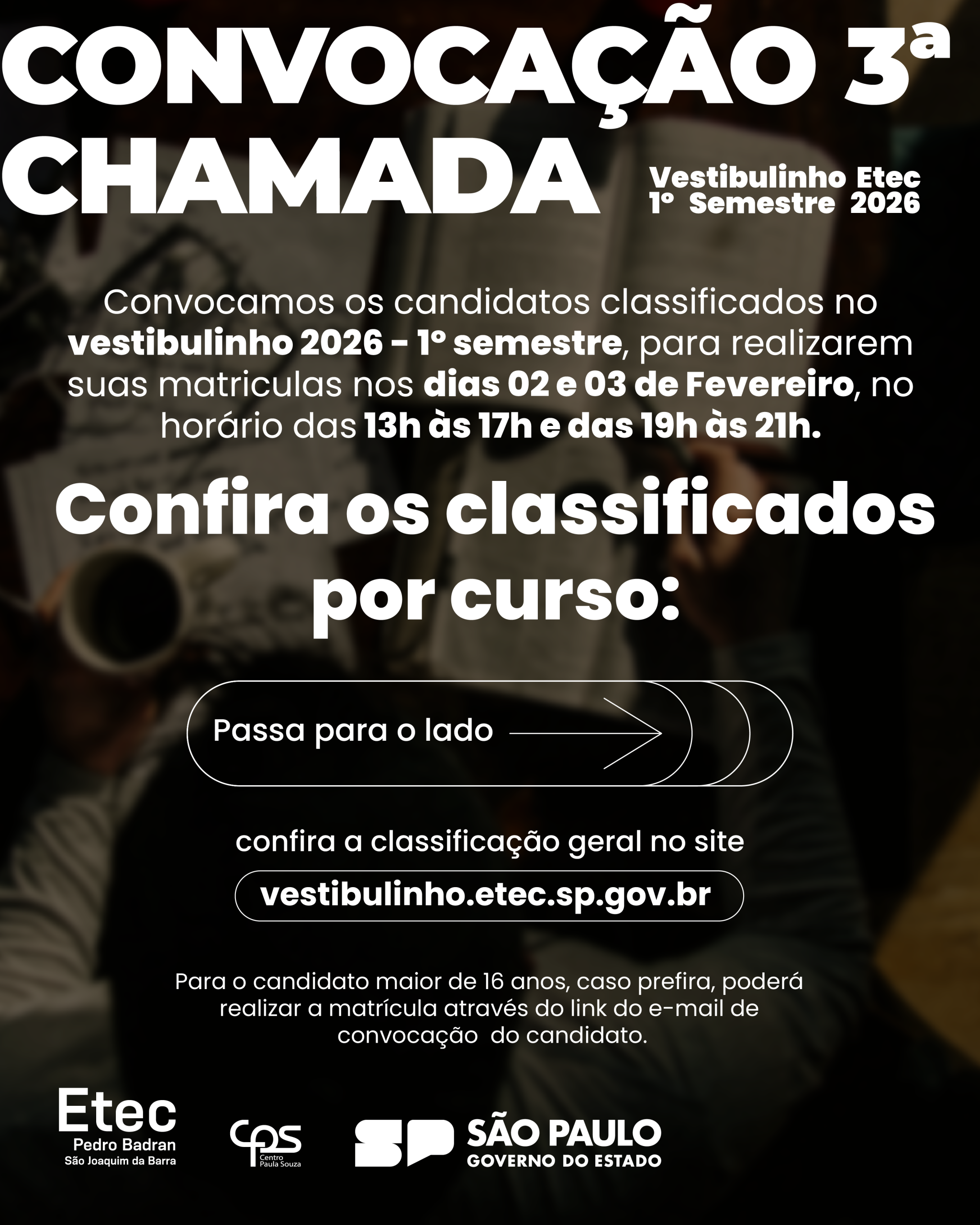 Atenção, candidatos! A Etec Pedro Badran divulga oficialmente a 3ª Lista de Convocação do Vestibulinho 2026 – 1º Semestre.
